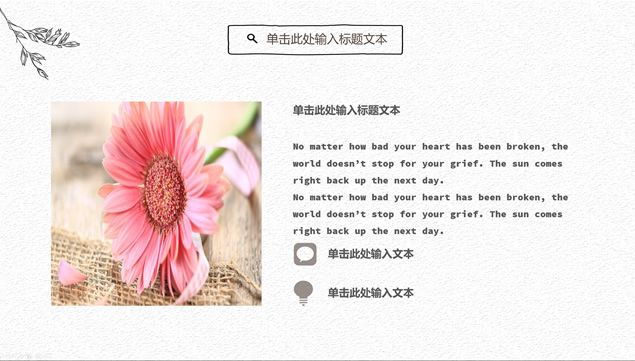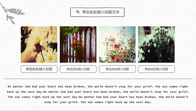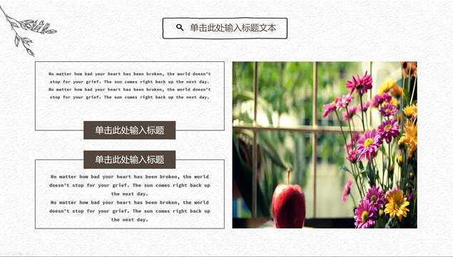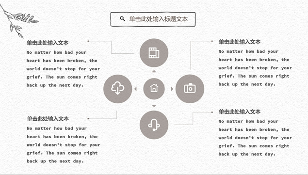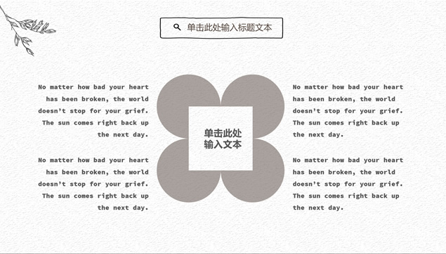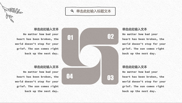 简介:细线圈及线条简约封面设计,铅笔素描手绘树枝、面包、柠檬汁、文本框等元素,灰色噪点白色典雅背景,文艺范清新风格设计,适合于工作总结报告、工作汇报的通用ppt模板。![点击放大 [免费]铅笔素描清新风文艺范工作总结报告ppt模板](https://www.08i8.com/wp-content/uploads/2020/08/1597399490-9fe839e9ab85e20.jpg)
