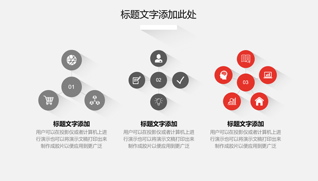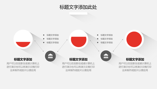 简介:淡雅灰背景,圆形长阴影封面设计,简约高端排版,长阴影图表、几何图形长阴影、图片长阴影效果,适合工作总结报告的长阴影简约高端大气扁平化ppt模板。