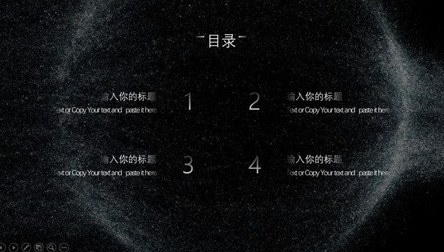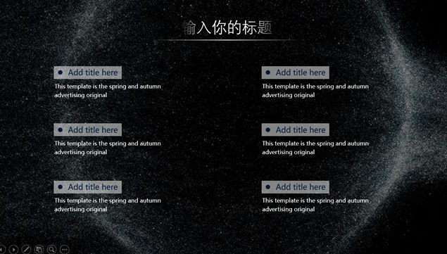 本文由 资源共享网 – admin 发布,转载请注明出处,如有问题请联系我们![免费]鎏金沙粒光环暗黑背景半透明图表工作汇报ppt模板