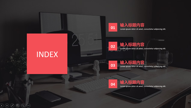 本文由 资源共享网 – admin 发布,转载请注明出处,如有问题请联系我们![免费]暗黑办公桌背景大图封面简约扁平化红黑商务工作总结ppt模板