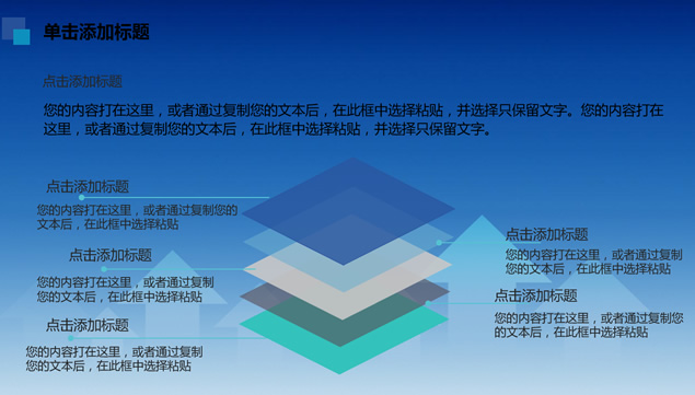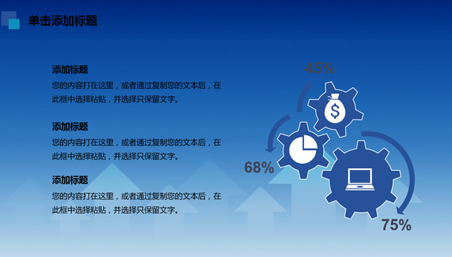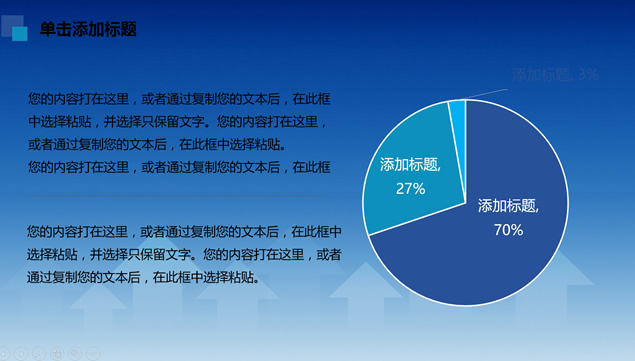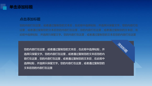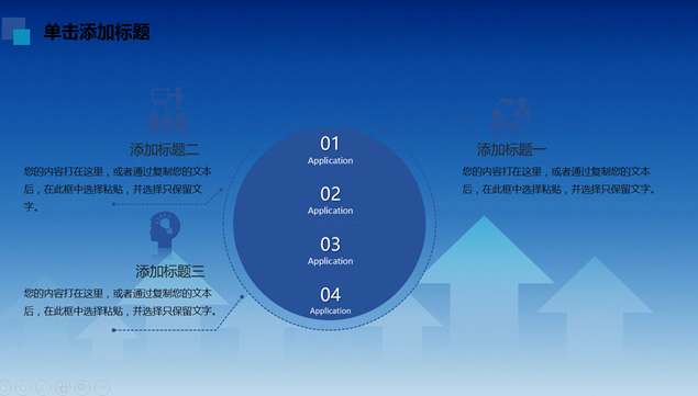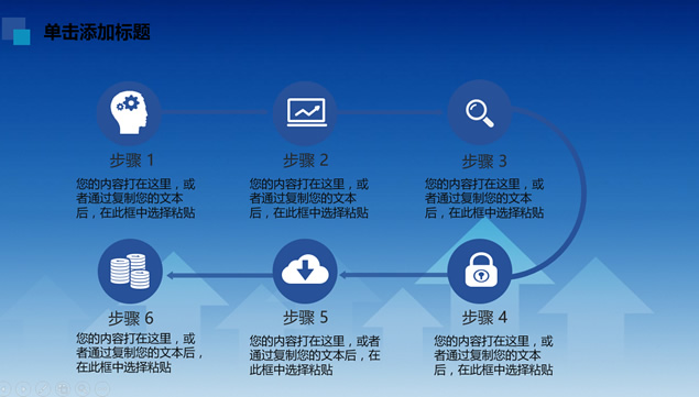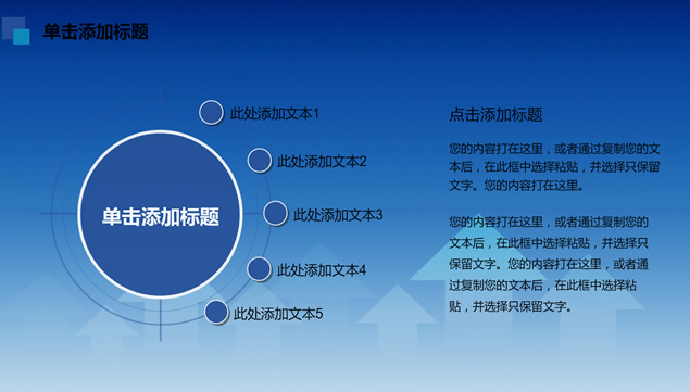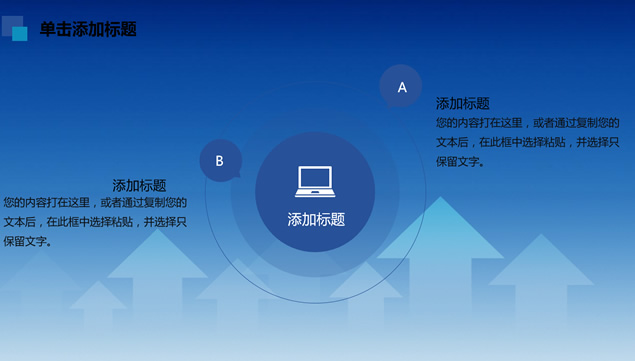 简介:向上箭头,蓝天白云,现代都市,城市绿化植物等元素合成封面,扁平化图标渐变蓝背景,适合房地产行业通用工作汇报的ppt模板。