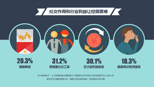 本文由 资源共享网 – admin 发布,转载请注明出处,如有问题请联系我们![免费]中国人的控烟态度吸烟现状调查报告ppt模板