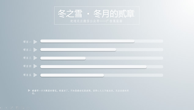 本文由 资源共享网 – admin 发布,转载请注明出处,如有问题请联系我们![免费]冬之雪.银装素裹——唯美雪花银色质感冬天ppt模板