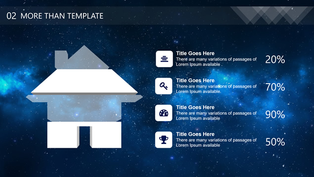 简介:炫酷5秒倒计时特效开场,唯美蓝色星空背景,炫酷星球、星球运行轨迹、流星创意设计封面,半透明星球设计目录页,几何风标题文字设计过渡页,大气简约扁平化iOS风设计,精美实用多套单色半透明图表,适合年终总结、工作总结、商务述职、商务演示、新年工作计划等场景应用的唯美星空炫酷星球科技风大气发布会总结汇报ppt模板。