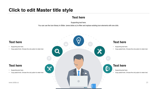 简介:文字遮罩图片、极简文字标题留白背景时尚封面,简约扁平化设计,蓝灰配色,放大镜、记事本、商务客服、齿轮、等精美商务图标配图,适合商务工作汇报、工作总结报告等场景应用的简约时尚商务汇报通用ppt模板。