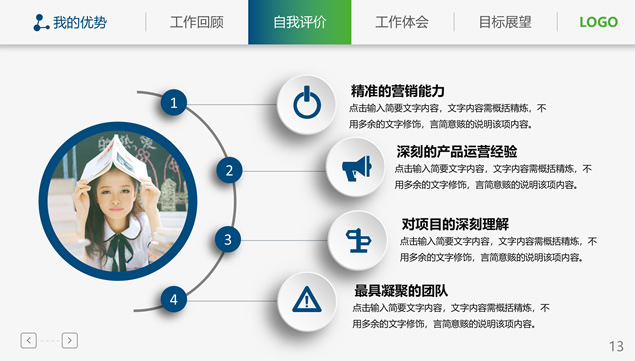 简介:完整版述职报告ppt模板,目录:工作回顾、自我评价、工作体会、工作展望,3D小人冲破终点主图,空间感几何图形创意封面,淡雅灰背景,蓝绿渐变配色,仿网页菜单切换效果设计,微立体风格图表,追求让梦想更接近,这是一个新的开始,开始新的一段旅程,适合述职报告、自我介绍等场景应用的蓝绿渐变完整版ppt模板。![点击放大 [免费]追求让梦想更接近——蓝绿渐变完整版述职报告ppt模板](https://www.08i8.com/wp-content/uploads/2020/08/1597404965-b770b342a6e3404.jpg)