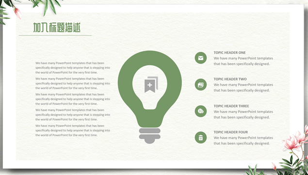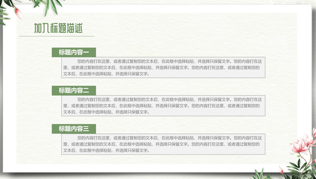 本文由 资源共享网 – admin 发布,转载请注明出处,如有问题请联系我们![免费]花草鸟儿小清新绿唯美文艺风ppt模板