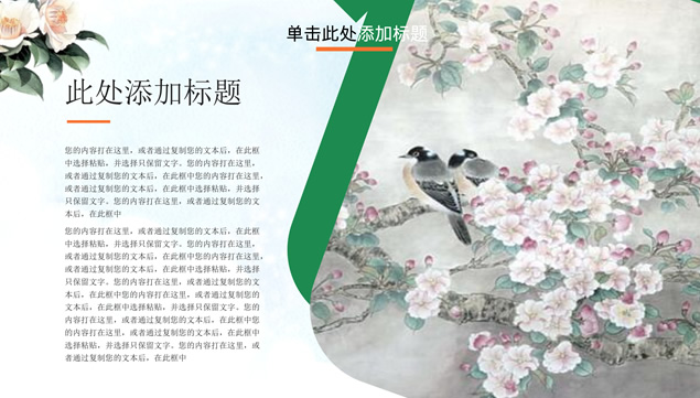 本文由 资源共享网 – admin 发布,转载请注明出处,如有问题请联系我们![免费]鸟语花香——花鸟植物小清新文艺风ppt模板