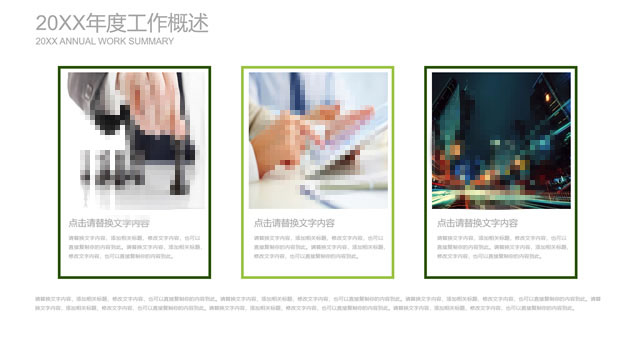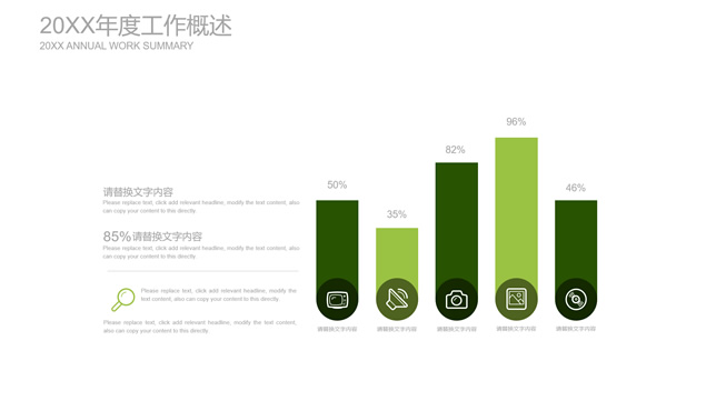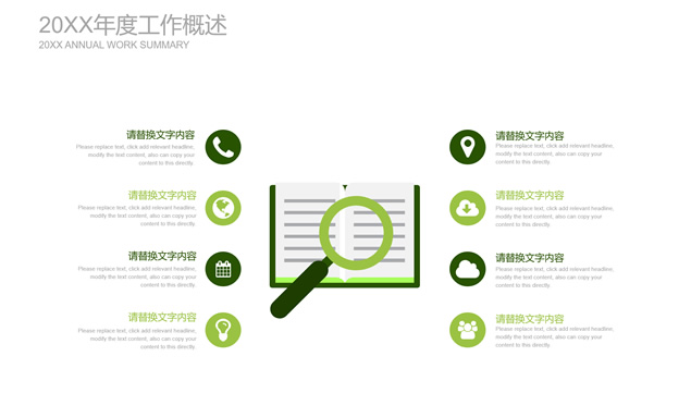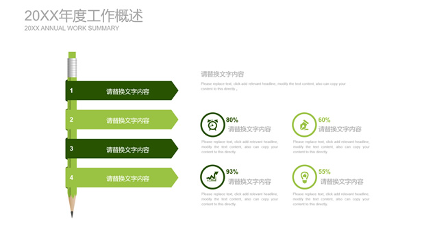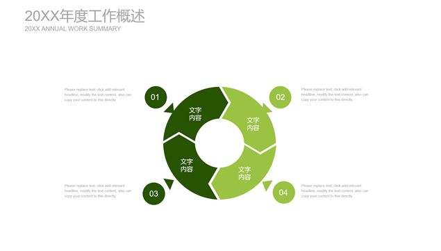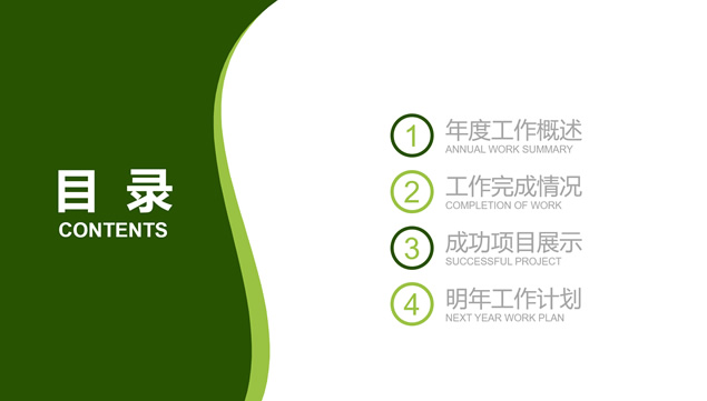 简介:扁平小清新绿工作总结计划ppt模板,目录:年度工作概述、工作完成情况、成功项目展示、明年工作计划,绿草主图封面、过渡页,简约扁平化设计,小清新绿配色,精美图表图文排版,适合工作总结、工作汇报、工作计划等场景应用的绿草小清新扁平ppt模板。