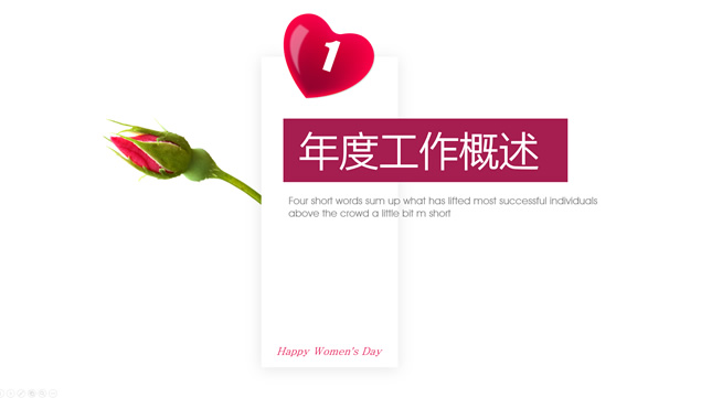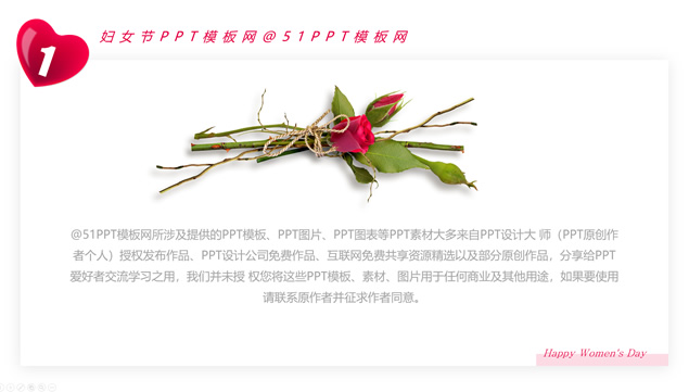 简介:爱心、玫瑰,几何图形线条阴影风格,大气简约设计, Happy Women\'s Day,3月8日妇女节ppt模板,适合妇女节工作汇报、妇女节表彰大会、妇女节商业活动策划等场景应用的ppt模板,@51PPT模板网 原创作品。