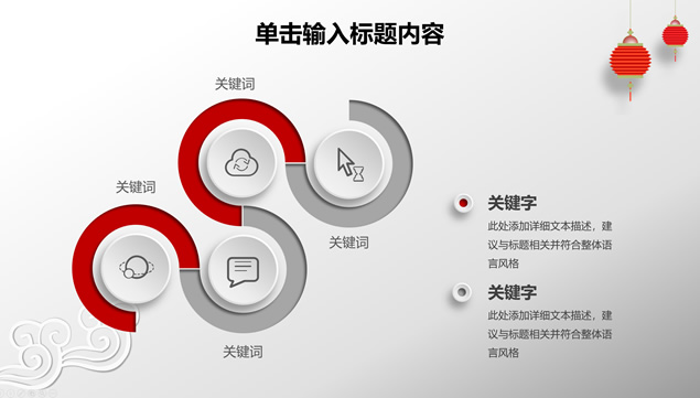 简介:喜庆微立体工作总结新年计划ppt模板,年度工作概述、工作完成情况、成功项目展示、工作存在不足,流光街道大图封面背景,中国结、可爱小猪剪纸、红色传统风纸扇、祥云、大红灯笼等素材配图,喜庆红配色,微立体设计,适合年终工作总结、新年工作计划的喜庆红新春主题通用ppt模板。![点击放大 [免费]喜庆红微立体新年主题工作计划ppt模板](https://www.08i8.com/wp-content/uploads/2020/08/1597405658-6a3b2e534a20d12.jpg)