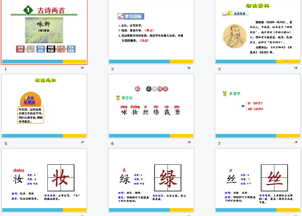 与《[免费]《咏柳》PPT教案》相关的《学生资源》