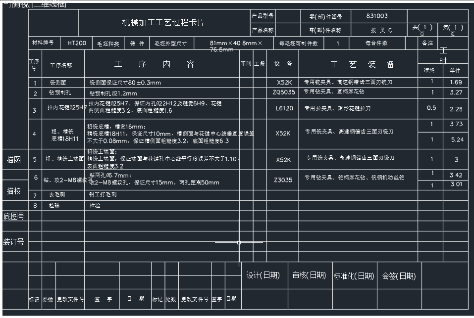 本文由 资源共享网 – ziyuan 发布,转载请注明出处,如有问题请联系我们!拨叉[831003] 5-钻φ5锥孔及2-M8孔夹具全套资料(cad源文件、封皮任务书、设计说明书)