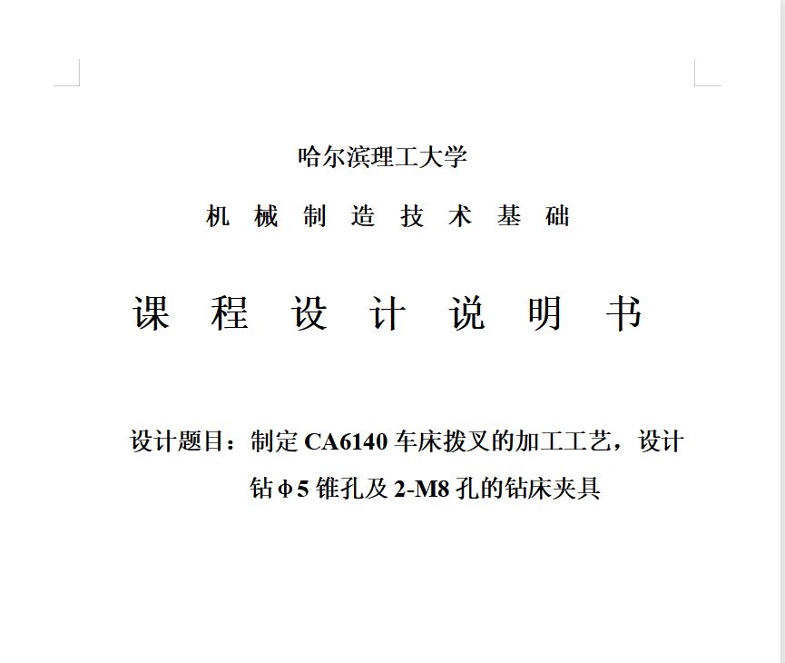 设计题目:制定CA6140车床拨叉的加工工艺,设计钻φ5孔及2-M8孔的钻床夹具
