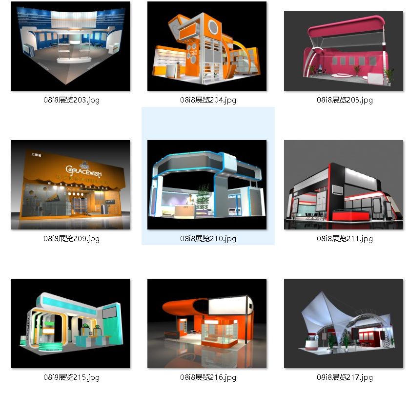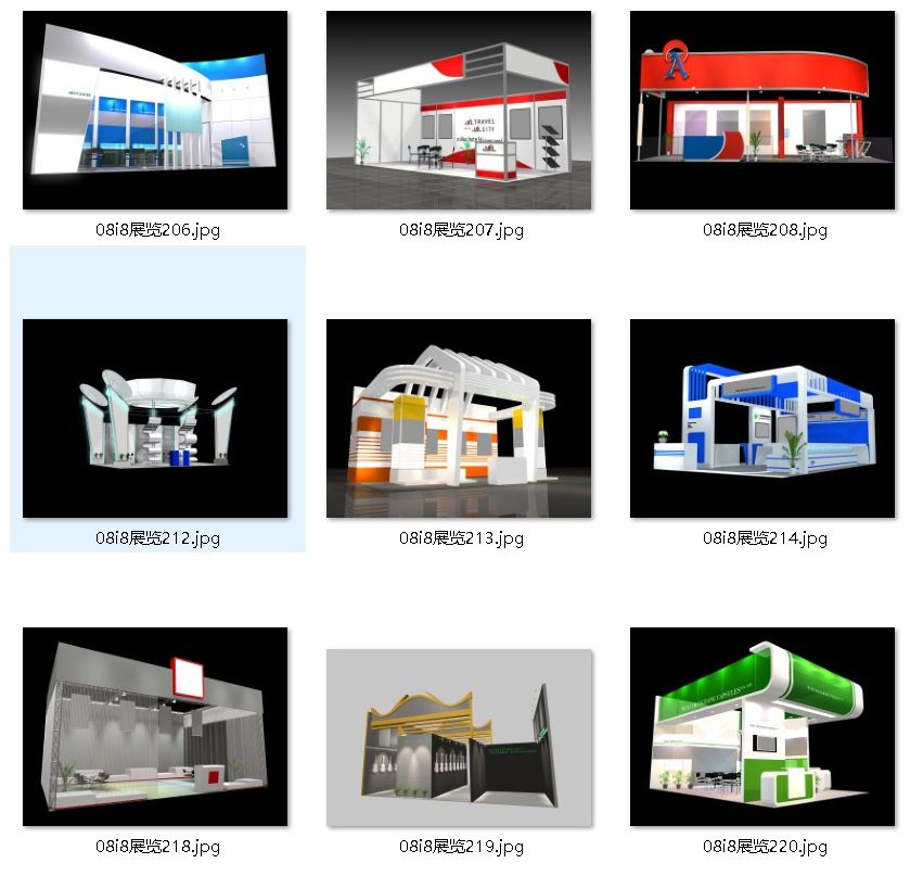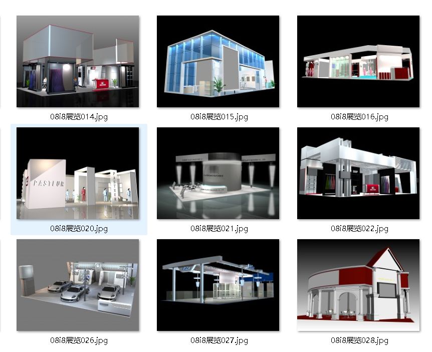 共1562套。非常适合设计师和参展单位参考。其中45套为全套素材(包含3D模型源文件+CAD源文件+多张效果图)其他为3D模型和效果图。非常适合设计师和参展单位参考第一部分:45套3D模型源文件+施工图源文件+无水印效果图第二部分:650套3D模型源文件+jpg小图第三部分:593套3D模型源文件+jpg小图
