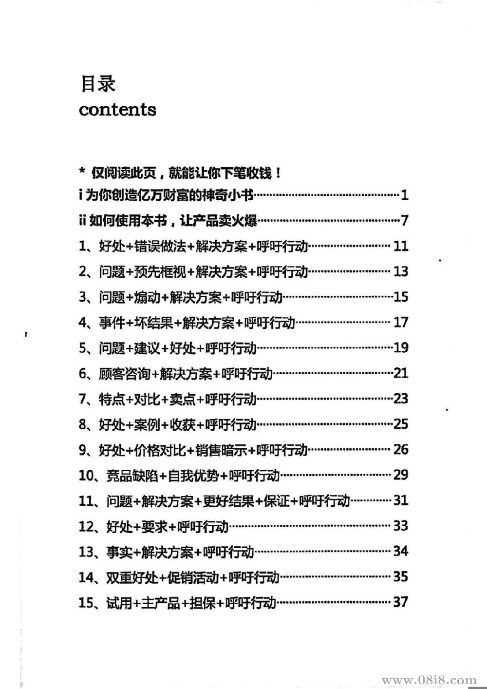 仅阅读此页,就能让你下笔收钱!在《收钱文案》这本神奇的小书中,我揭露了如何直接有效、轻松简单地“下笔收钱”!本书属于实操本,为了你的利益,你必须遵循书中的指示,听话照做。否则,请把这本神奇的小书寄回,我会全额退款给你。因为,我不想浪费你的时间和金钱。如果你严格要求自己,按照讲到的步骤,模板,操作方法去练习和执行,我保证你写出来,发出去,就能收到钱!你能答应我的要求吗?如果能,请继续往下读……